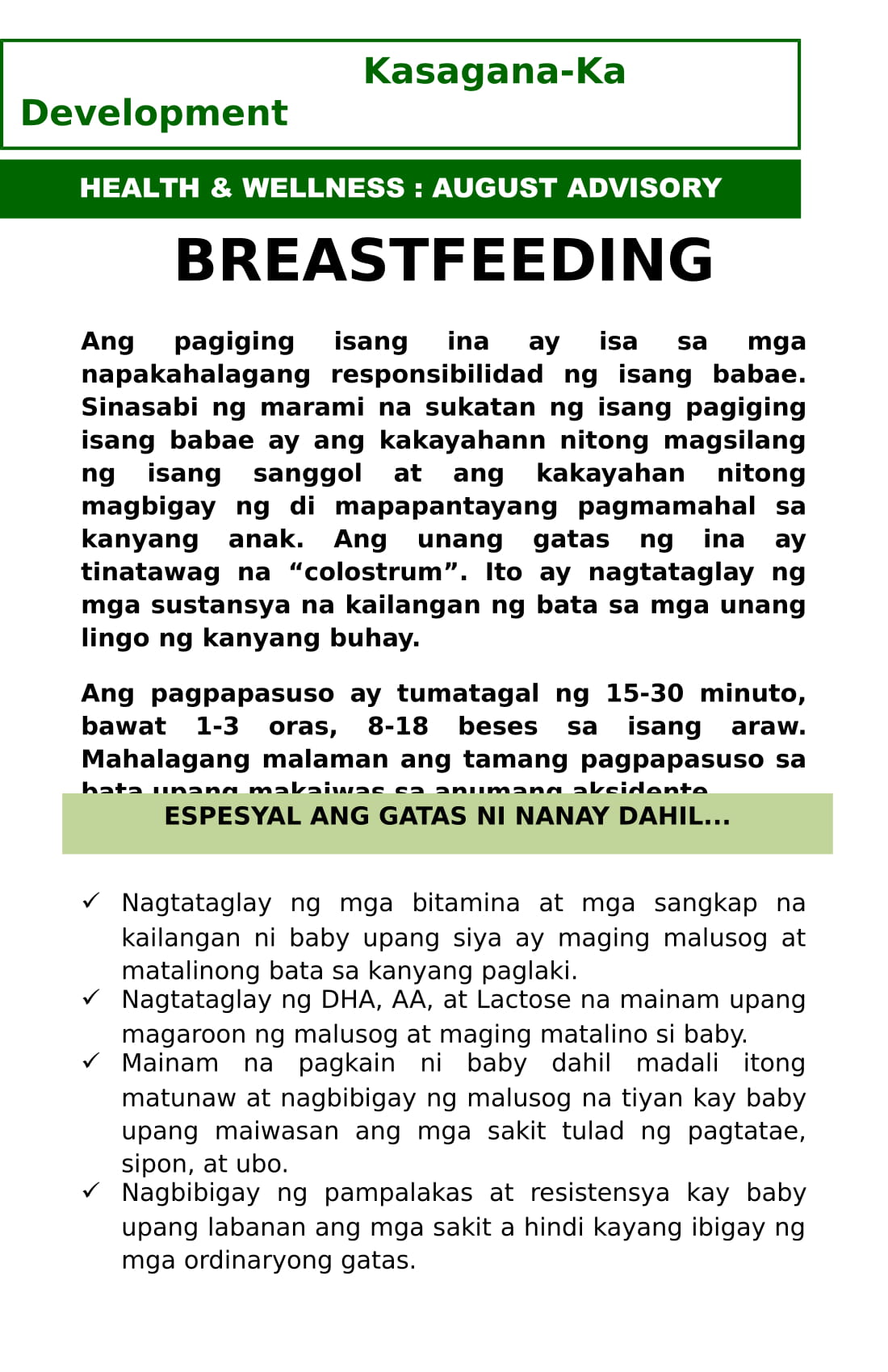 August Nutrition Advisory on Breast feeding
