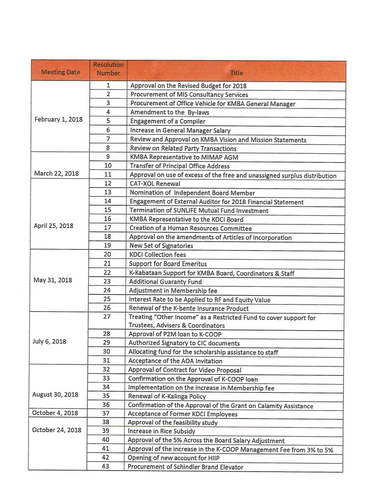 Please be informed of the following board resolutions of 2018 for Approval & Ratification on 13th Annual General Meeting on May 31, 2019 which will be held at KMBA Building located at 5 Matimpiin St. Brgy. Pinyah... Read more...