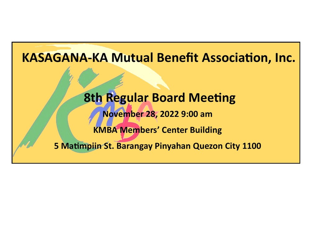 We would like to inform you that our 8th Regular Board Meeting will be held on November 25, 2022 at KMBA Members' Center Building, 9:00 in... Read more...
