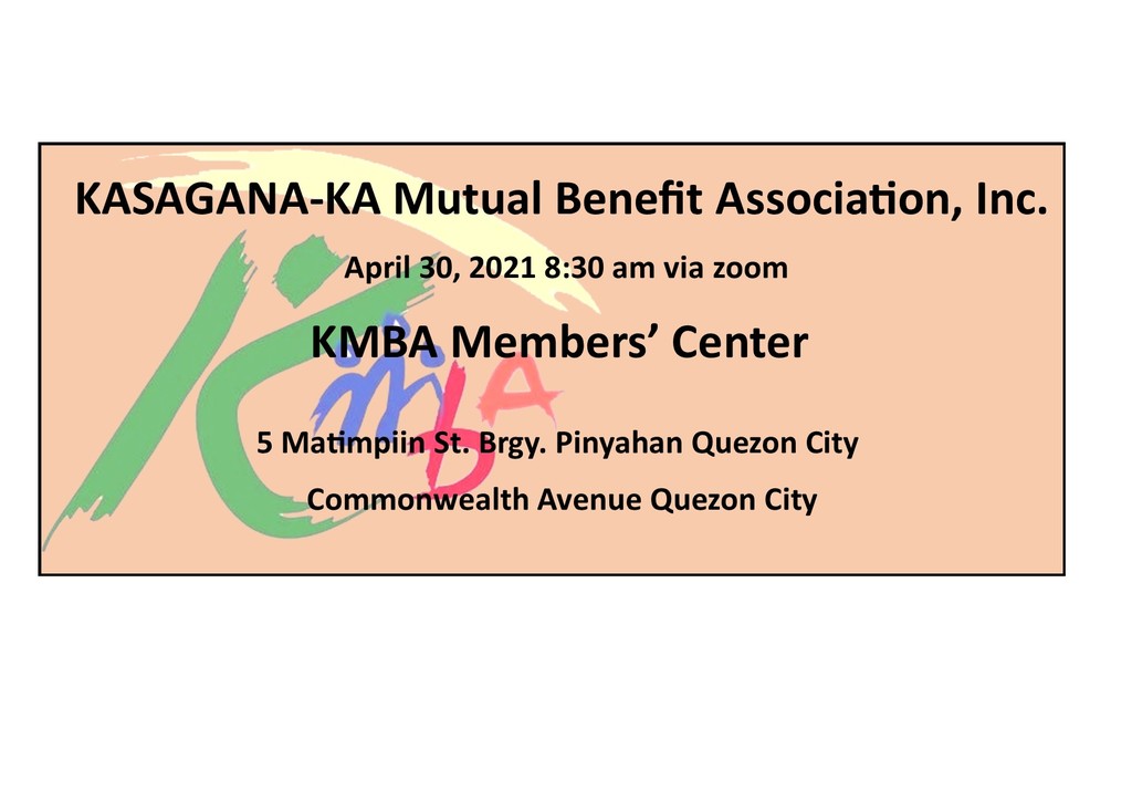 KMBA is inviting you to join our Seventh (7th) Regular Board Meeting which will be done via zoom. Matter for Discussion are as follows.